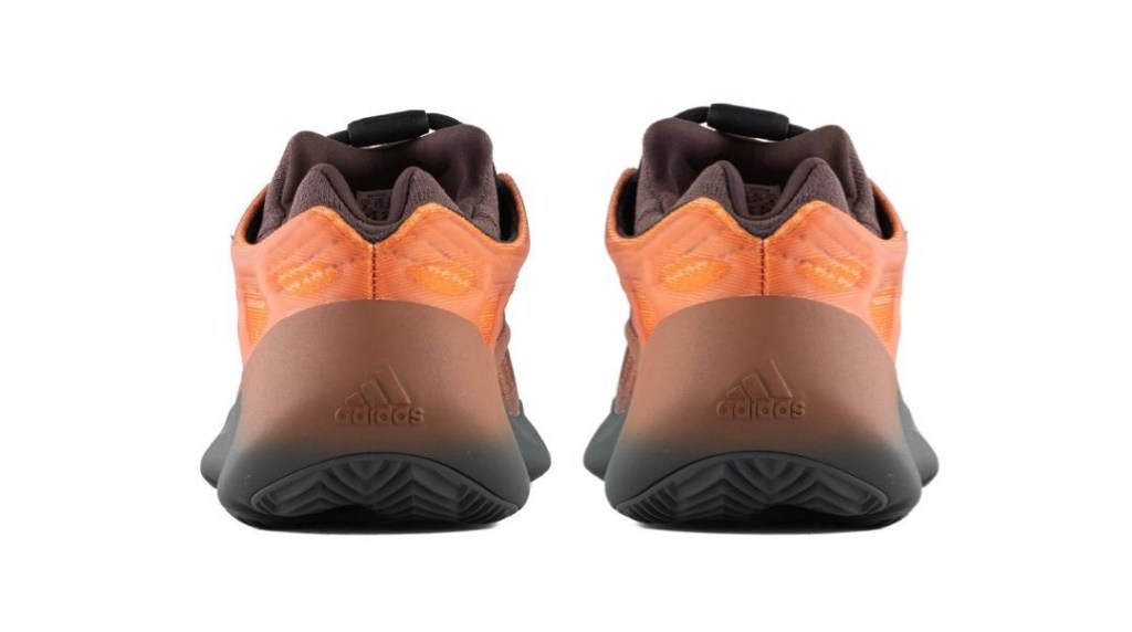 The upper has a slight twist although using the same mesh materials wrapped in a rubber cage this time in a dark Copper-Orange. The color actually fades from the upper onto the midsole at the heel area. Hence the name Copper Fade. Finishing off this sneaker everything rests in top of a Dark Grey EVA midsole. Unfortunately these do not feature boost like other 700 models. The outsole comes in black and you can see the EVA cushioning through cutouts underneath.